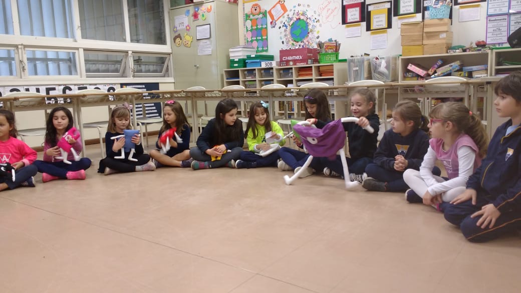 Durante a atividade, os estudantes ouviram a narração da história O Cérebro e seus moradores, de Luciana Tisser e Vanina Cartaxo, adaptada e narrada pela Orientadora. Manusearam os personagens, contaram suas experiências sobre as emoções básicas. Identificaram as cartinhas da Dona Correspondência, relacionando a situação às emoções envolvidas. E, por último, fizeram uma atividade sobre Resolução de Problemas, na qual tinham que escolher um dos problemas, identificar sentimentos e criar uma alternativa de solução.