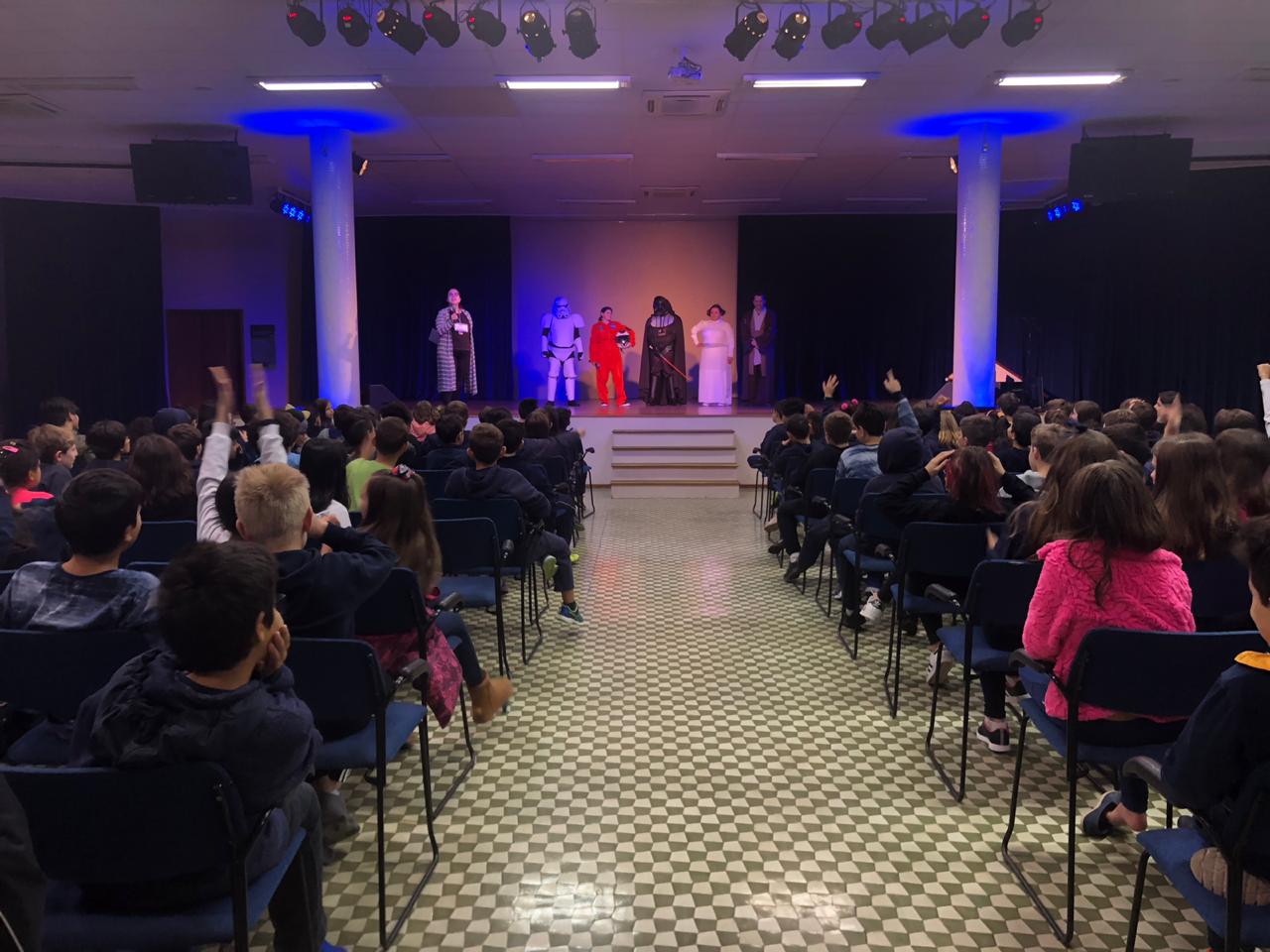 Durante os turnos da manhã e da tarde de ontem, uma astronauta, um stormtrooper, Darth Vader, Luke Skywalker e a Princesa Leia recepcionaram os alunos do 5º Ano no Auditório 1 para uma aula especial. A atividade faz parte do Projeto Detetives do Universo – Missão: Atitudes do Bem, que tem como objetivo instigar as crianças na busca pelo conhecimento e no cultivo de boas atitudes para uma convivência saudável.