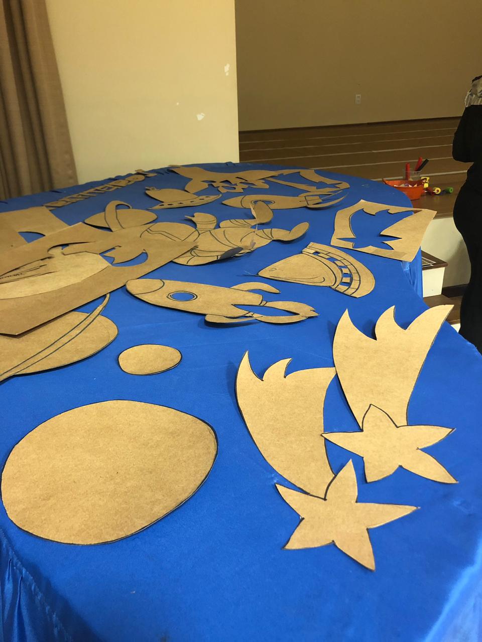A Oficina Atitudes do Bem, ambientada no Auditório do Prédio B, foi dividida em dois momentos: no primeiro, os alunos passaram por desafios de pensamento lógico; e no segundo, construíram um painel utilizando técnica de stencil, inspirado na Astronomia.