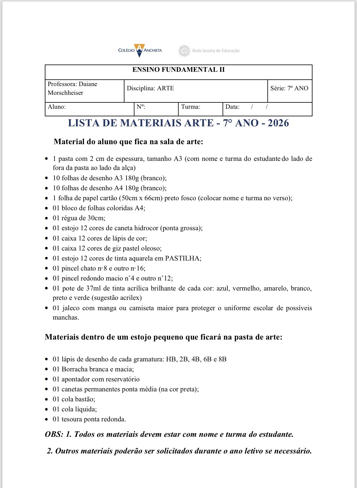 Ensino Fundamental II – 6º, 7º, 8º e 9º Anos