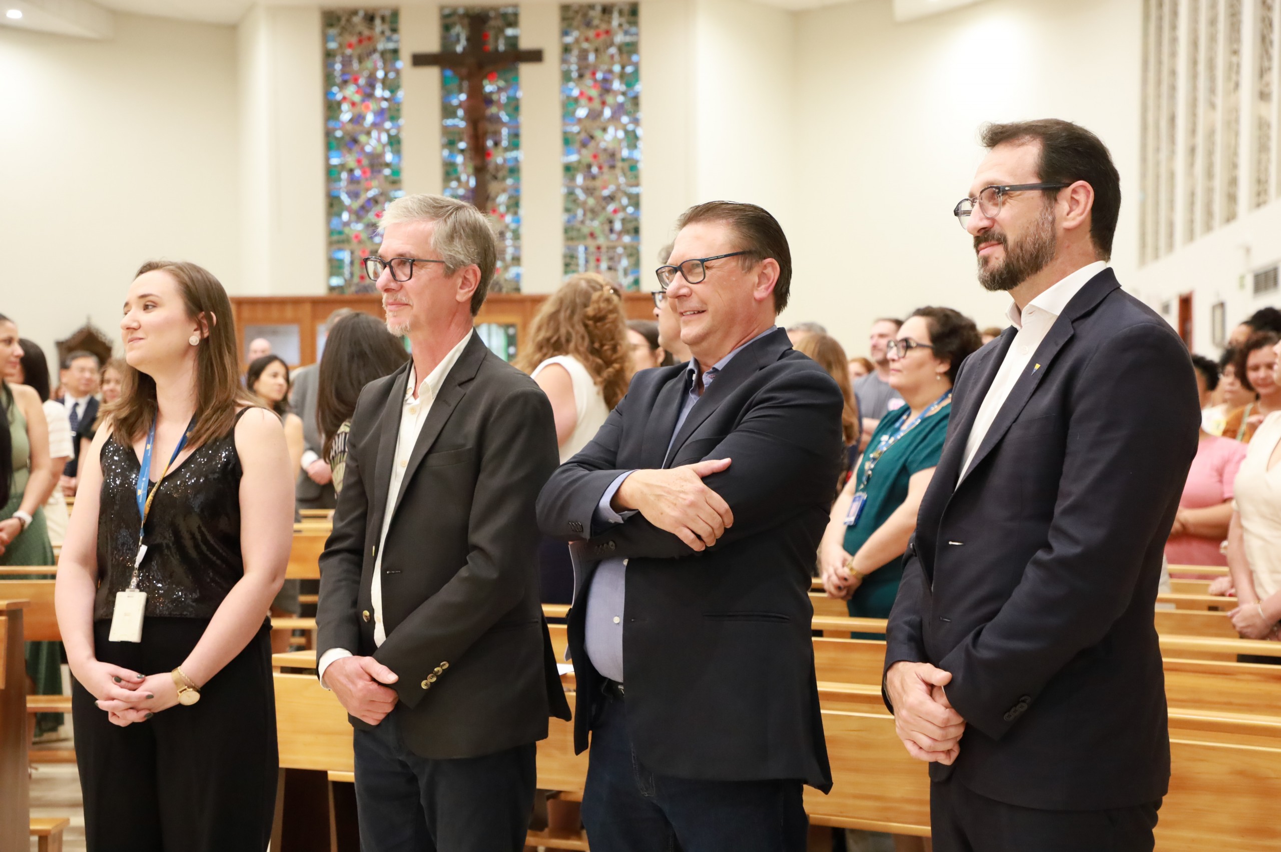 A cerimônia contou ainda com a presença de representantes da Fundação Fé e Alegria, evidenciando a integração das obras jesuítas e o compromisso comum com uma educação transformadora, especialmente junto às comunidades mais vulneráveis. Além disso, estiveram  na cerimônia os ex-diretores do Colégio Anchieta, Pe. João Cláudio Rhoden e Ir. Celso Schneider. A celebração também teve a presença dos  seguintes padres e irmãos jesuítas: