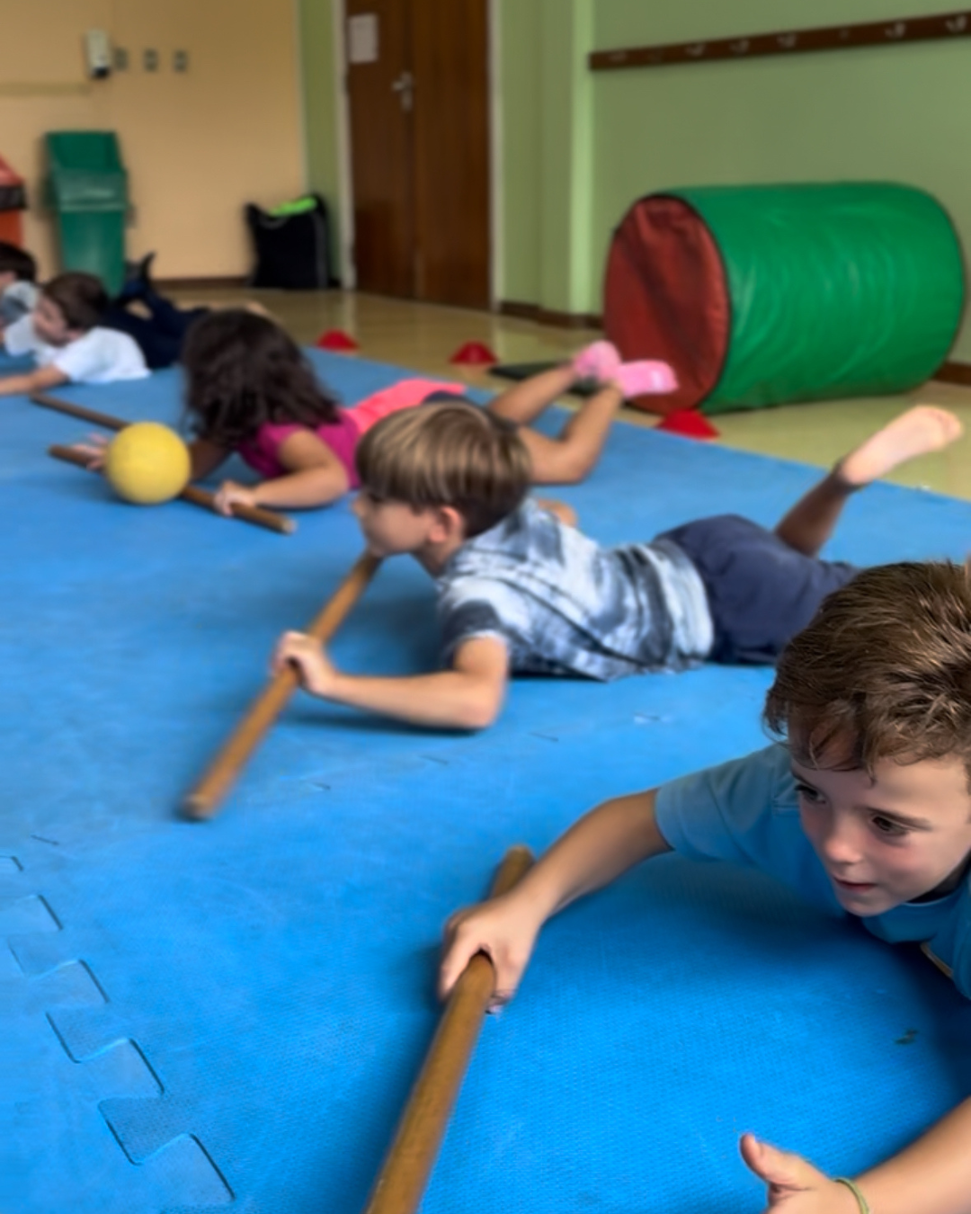 De acordo com a professora Gabriela Tassinari, as atividades ajudam no aprimoramento de diversas competências importantes nessa fase escolar. Um dos exemplos é o movimento de pinça, que auxilia na forma correta de segurar o lápis. Outro destaque é o fortalecimento da musculatura abdominal, trabalhado em exercícios específicos, contribuindo diretamente para o desenvolvimento integral dos estudantes.