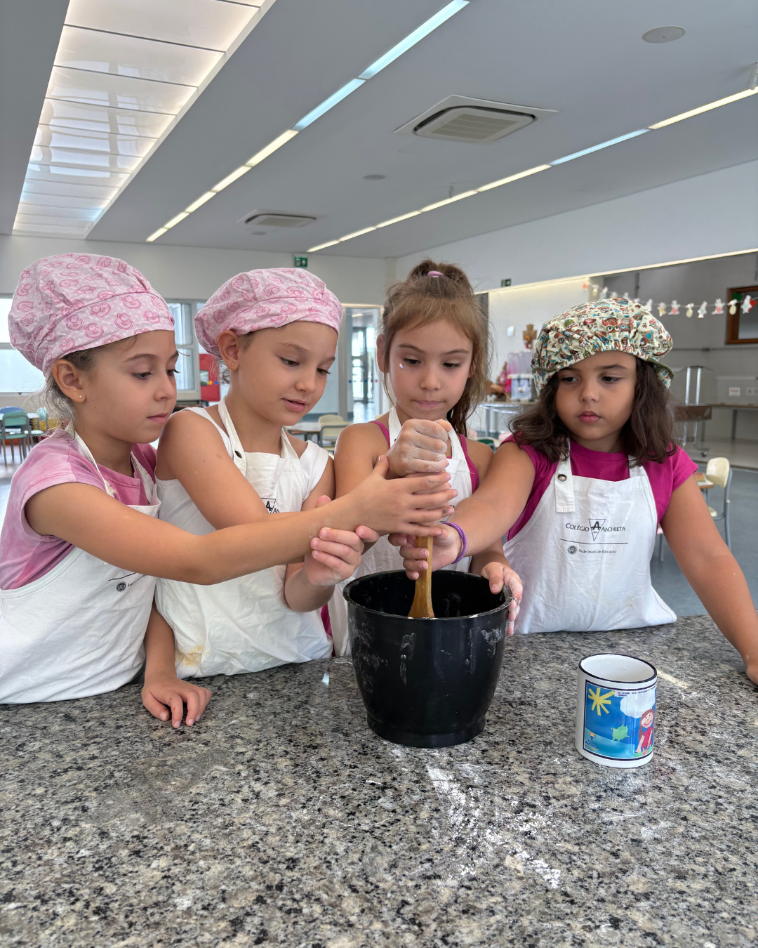 Outra frente do projeto é a Oficina Minhas Ideias, desenvolvida nas Línguas Portuguesa e Inglesa, e voltada à criatividade e à exploração do conhecimento. Nela, os alunos participam de atividades como culinária, artesanato e experimentos científicos, ampliando suas experiências de aprendizagem de forma dinâmica e interativa.