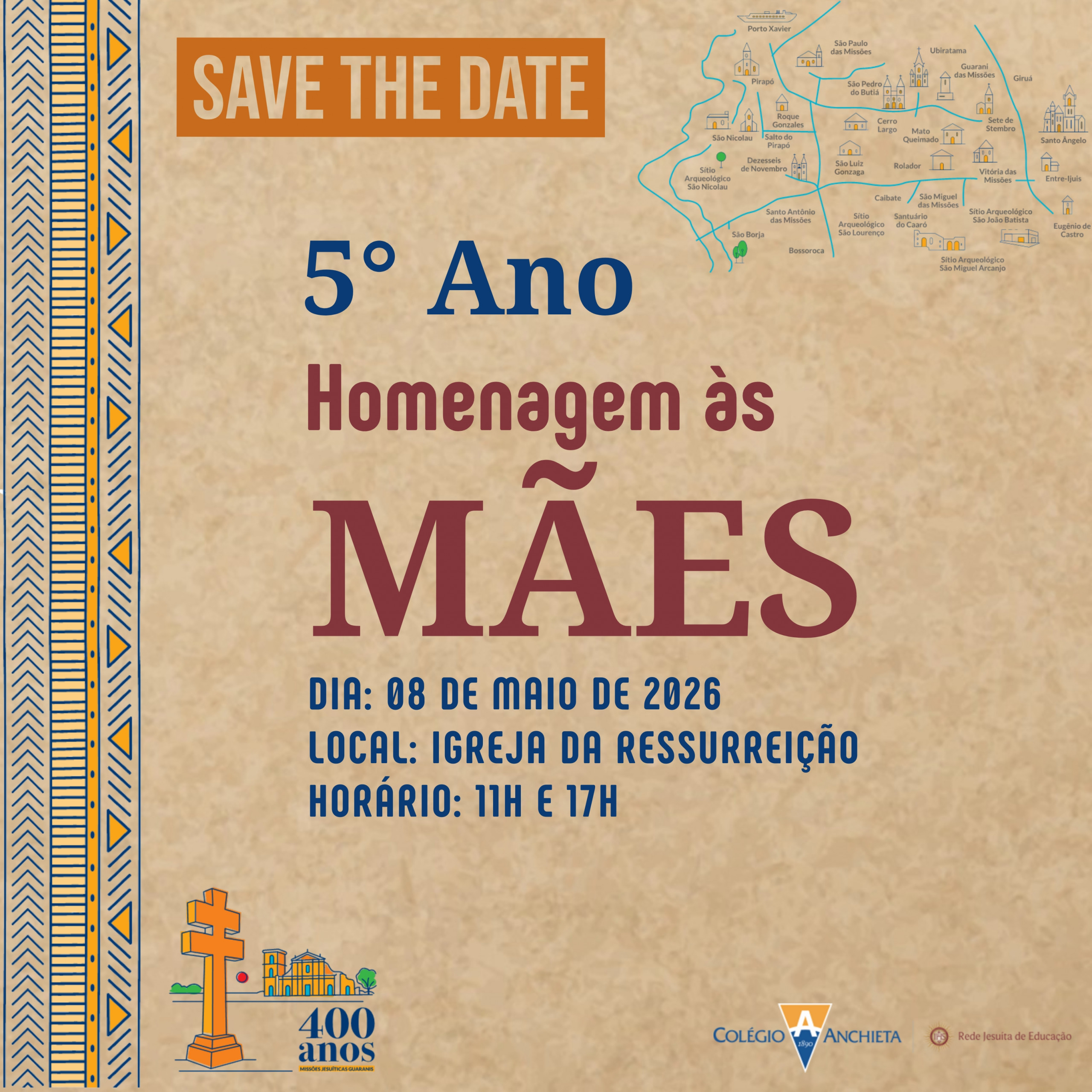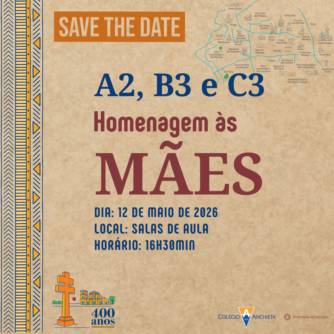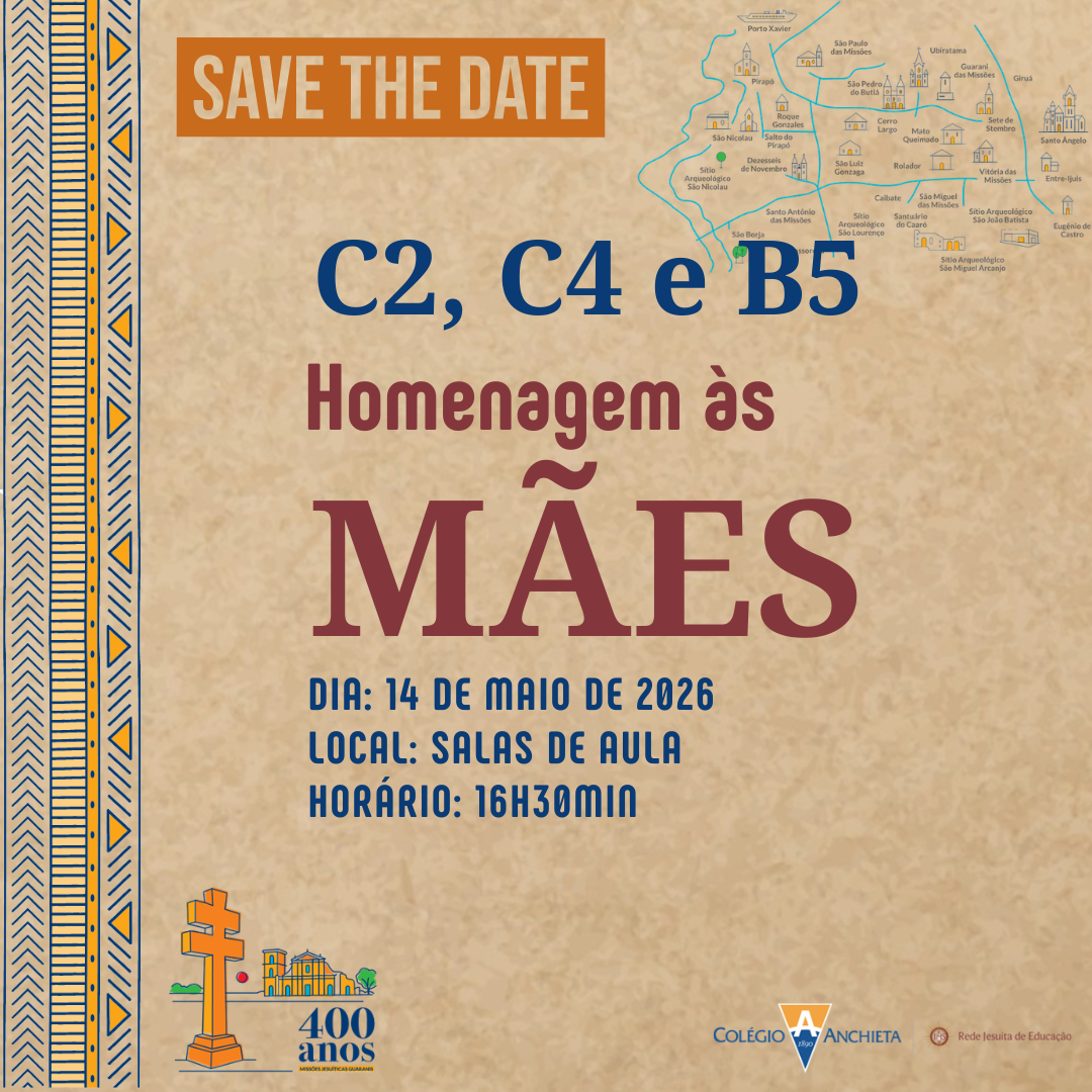 É com muita alegria que a Educação Infantil e o Fundamental | do Colégio Anchieta convida as famílias para prestigiarem as apresentações e homenagens preparadas com muito carinho pelos nossos estudantes para celebrar o Dia das Mães.